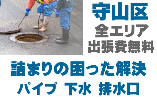 守山区で排水つまり、トイレ詰まり、シンクつまりなどの排水トラブルはお任せください。店舗の厨房、グリストつまりも対応しております。配管つまり、マンホールの溢れ、下水の臭い、排水管のトラブルは最短15分到着!
