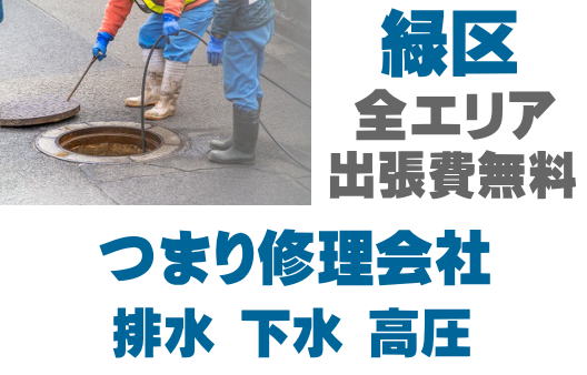 緑区で排水つまり、トイレ詰まり、シンクつまりなどの排水トラブルはお任せください。店舗の厨房、グリストつまりも対応しております。