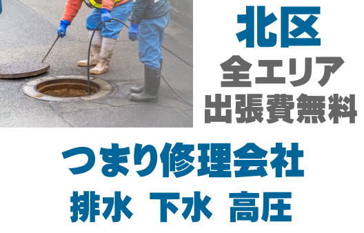 北区で排水つまり、トイレ詰まり、シンクつまりなどの排水トラブルはお任せください。店舗の厨房、グリストつまりも対応しております。