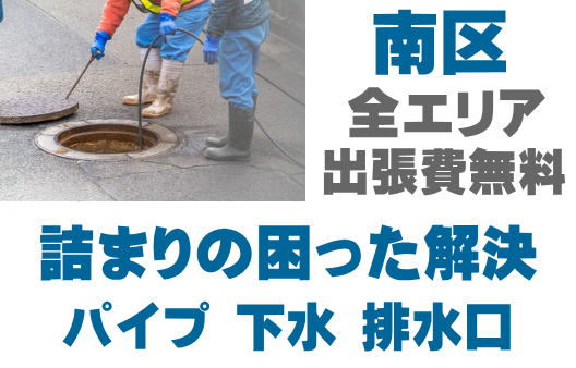 南区の水回りの詰まりを即解決!キッチン、トイレ、風呂、洗面、マンホール、雨どい、シンク、厨房、グリストなどの詰まりトラブル対応。
