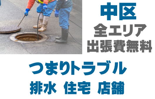 中区で下水つまり、トイレの溢れ、厨房やグリストラップつまりを修理を行っている会社です。